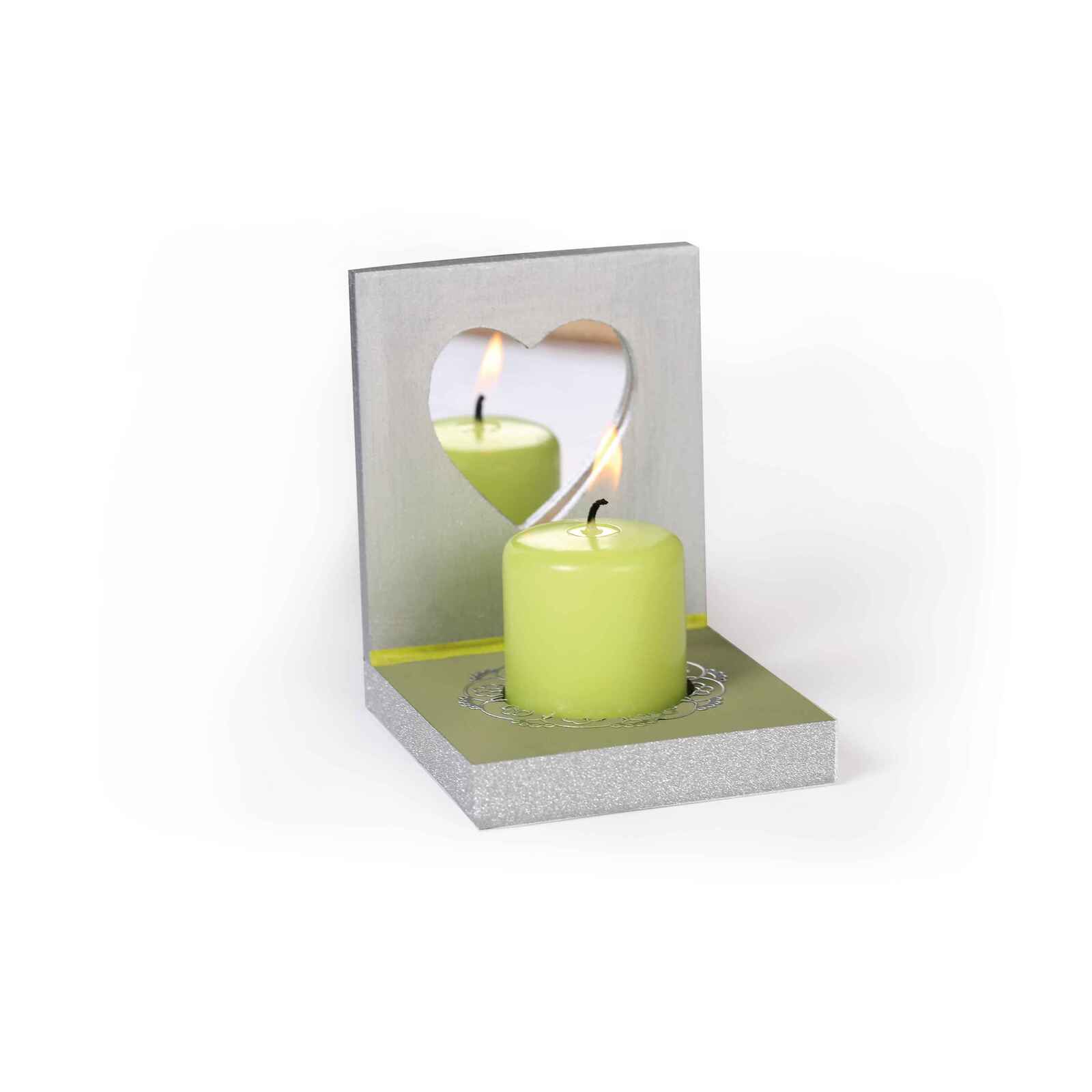 Porte-bougie cœur. Miroir intégré.Dim. (L x l x H) : 8 x 10 x 8,7 cm - Lot de 5Dont 1 offert