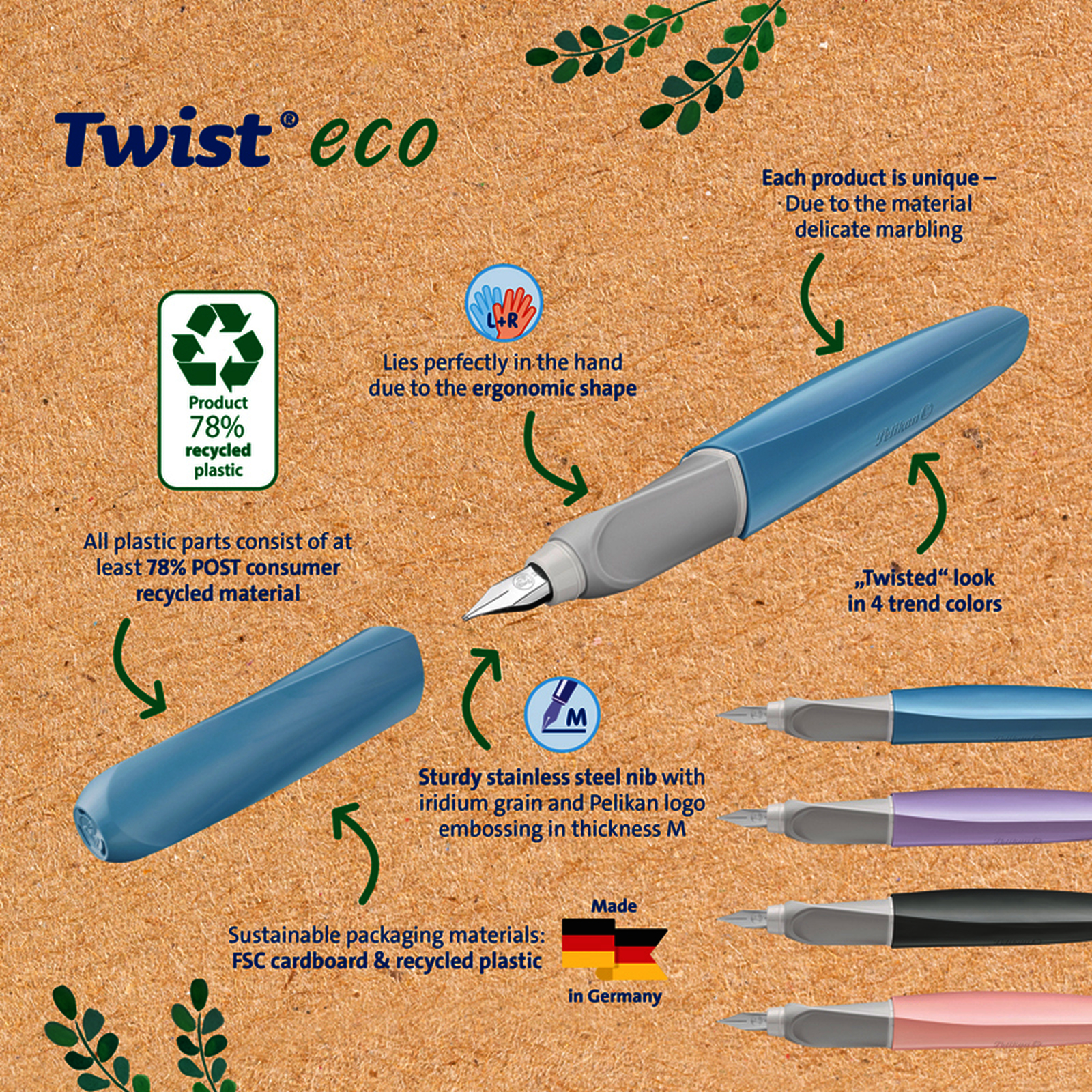 1 STYLO PLUME TWIST ECO TAILLE M COLORIS BLEU