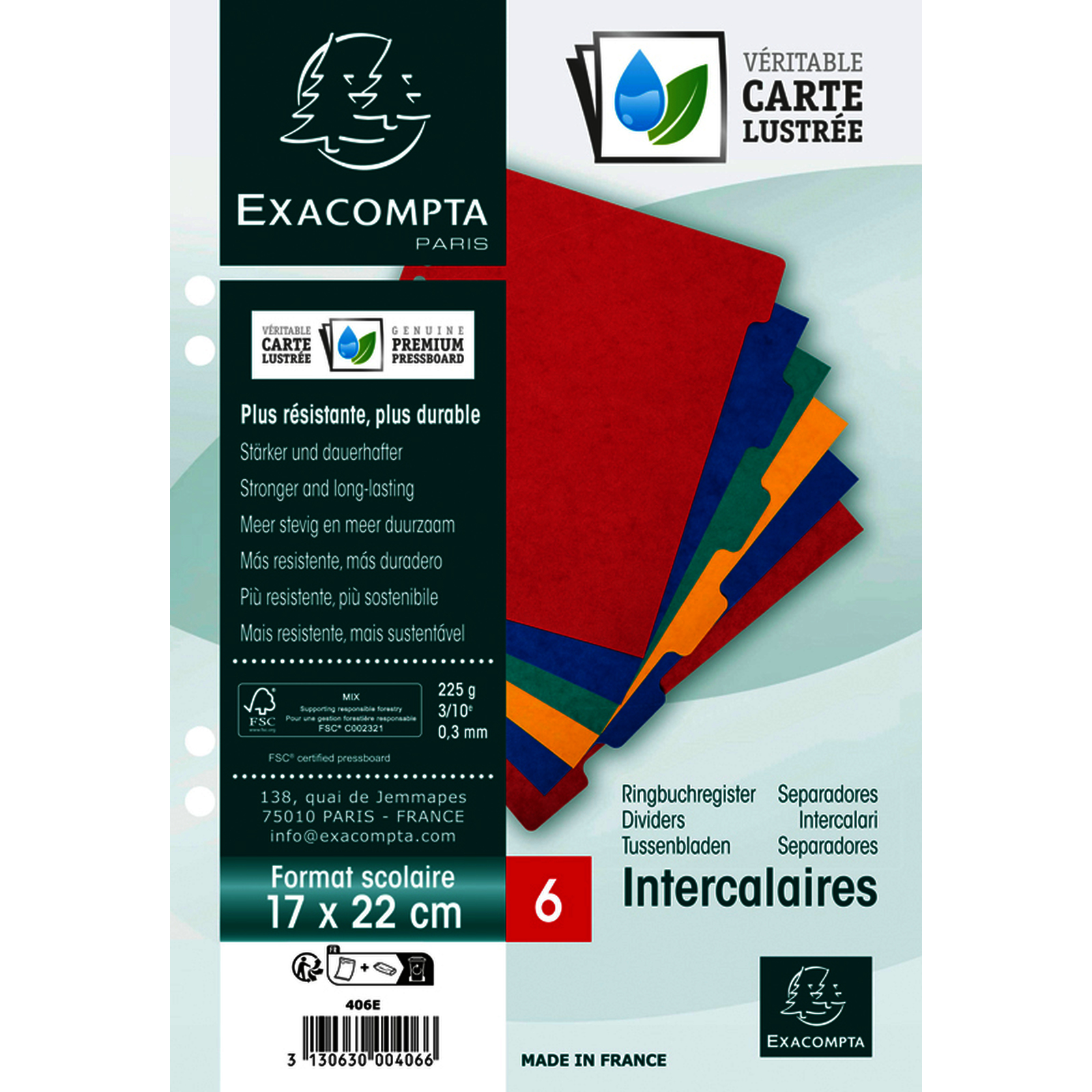 INTERCALAIRES 17X22 CARTE LUSTRÉE 6 POSITIONS