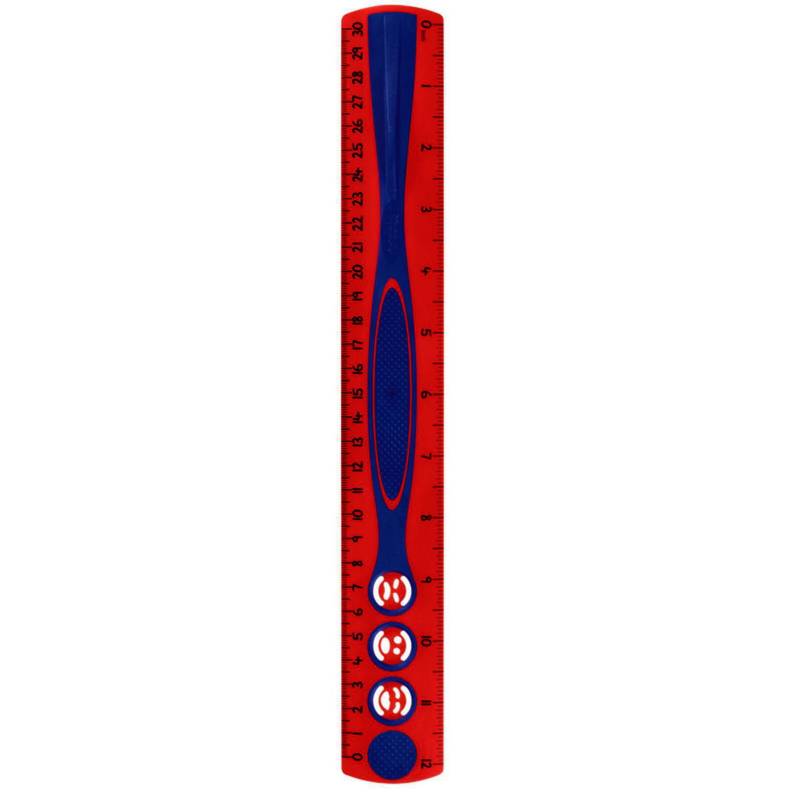Une r?gle bien pens?e avec une petite poign?e de pr?hension sur un c?t? et des surfaces antiglisses ? picots pour faciliter sa prise en main.