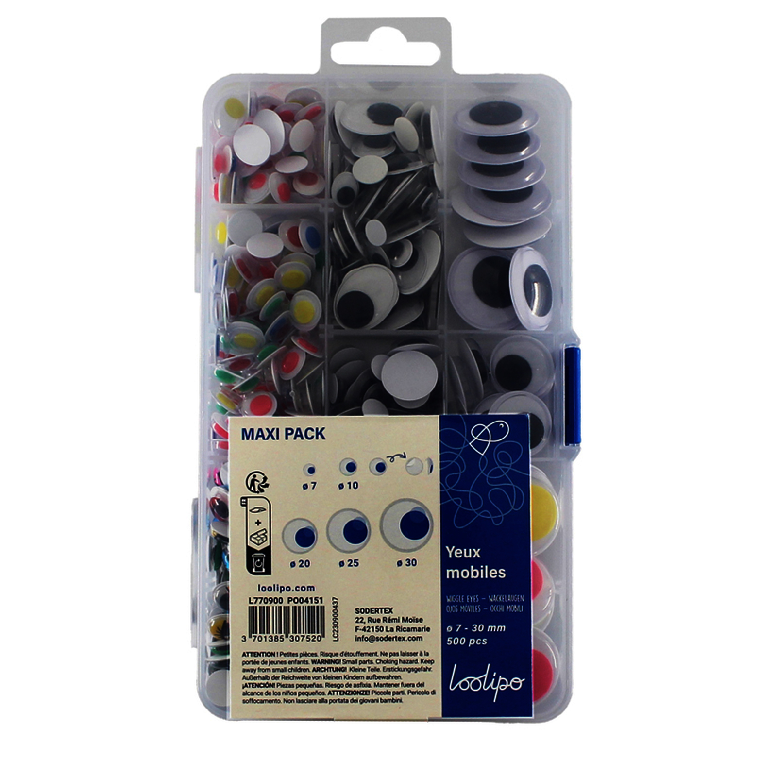 Coffret plastique de 500 yeux assortis - Adhésifs